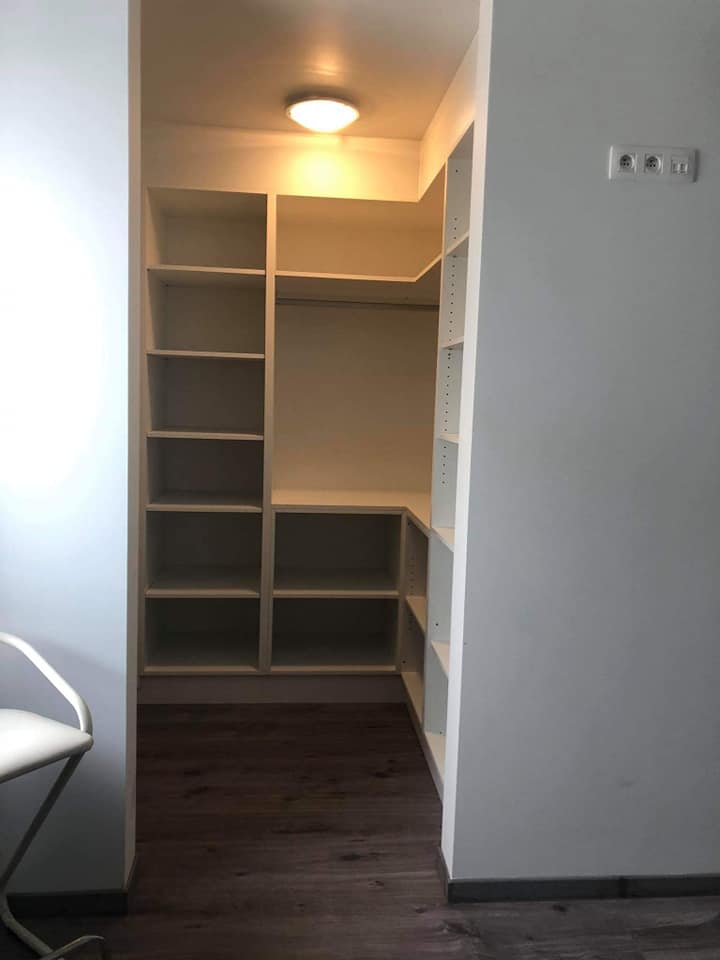 Maatkasten bestaan er in diverse formaten en uitvoeringen. Eén van onze specialiteiten zijn walk-in closets, al dan niet voorzien van verlichting en verluchting. Van strak en functioneel, tot landelijk en luxueus. Ook voor in kleine kamers en onder schuine daken bieden we talrijke toepassingen. Vraag gerust naar de vele opties voor inloopkasten.